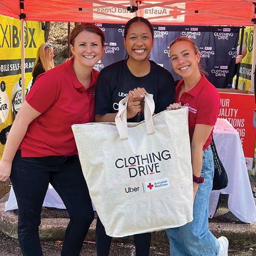 Our Uber x Australian Red Cross Clothing Drive was a major highlight for 2025, with 125,000 kilograms of quality clothing donated – a 56 percent increase on the 2024 total of 80,000 kilograms.