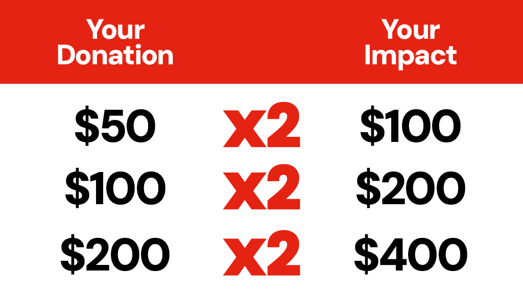 Your generosity now has twice the reach.